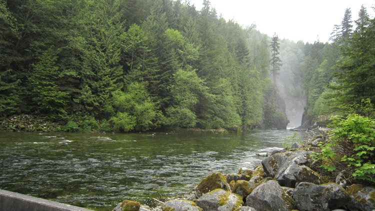 到底是去那裡呢?我們去看三文魚在天氣暖和時回流的地方。