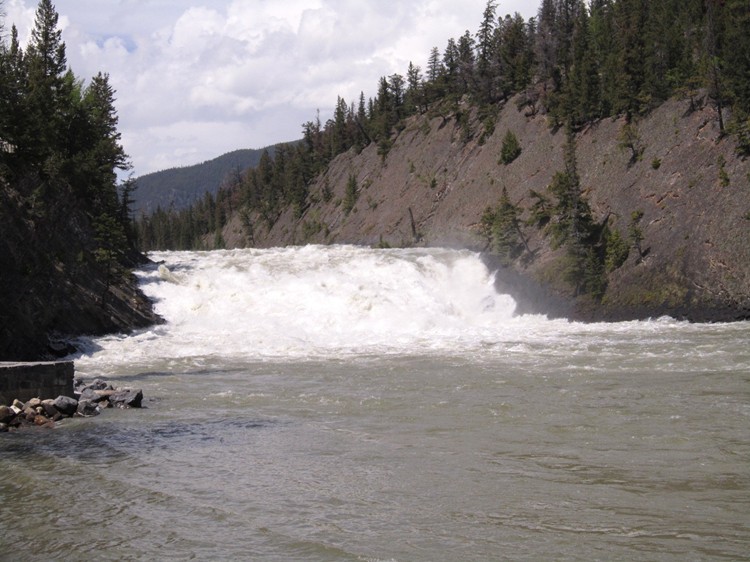 這是當年瑪麗蓮夢露拍第一部成名作品『大江東去』的拍攝實境場地:弓河瀑布。弓河瀑布是弓河落差所造成的急流,夏季融雪水量較大,瀑布特別壯觀。弓河瀑布在1953年拍攝的『大江東去』電影中,頗為風光的出現在全球觀眾眼前。