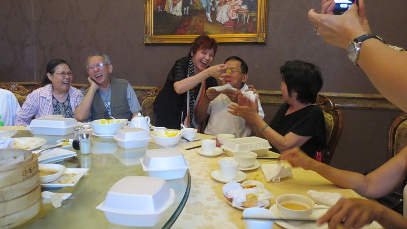 Stella 久居多倫多,因要最少一个半小時的等候,這次是頭一次來,所以也要和何春馨,余小玲(也是洪佳 (69)的好友),劉慧虹拍照留念兼感谢,另外一位忙着拍照的是郭夢雲師母的妺妹郭秀芬,從澳洲悉尼來,好欣赏多市的精美点心。