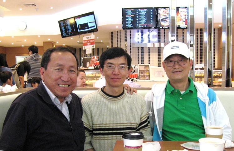 一星期後,余錦成(中)再與兩位澳洲同學陳敬國(左)和曾清祥(右)久別重逢,大家喜形於色。