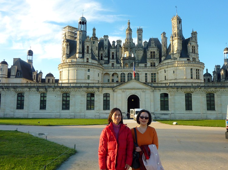 位於法國西部盧瓦爾河流域的香波城堡從1519年開始興建,花了逾130年時間才竣工,即使在側面看也難掩其磅礴氣勢。莫秀蘭和陳淑萍在被法國人視為最值得炫耀的國寶「香波城堡」門前合照。