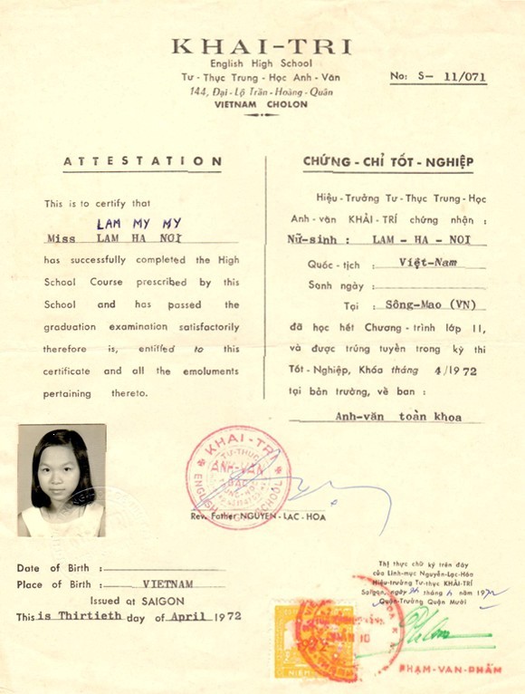 以上是林湄湄的英文與越文版的啓智高中畢業證書