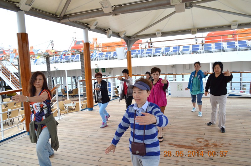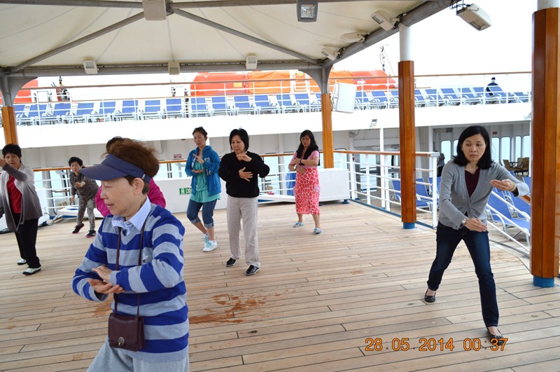 #13 遊輪上的太極拳,看來張老師不但教英文,也教太極拳!
