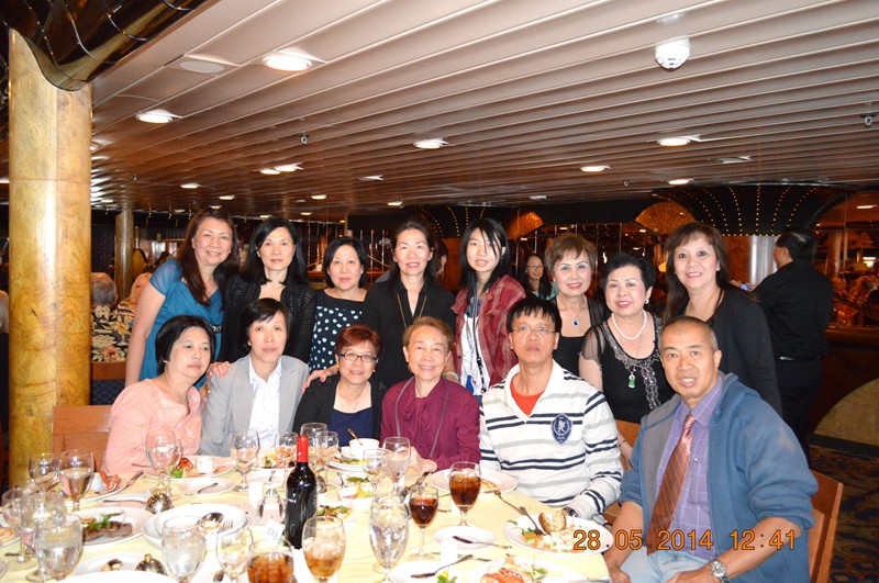 #3 77年班校友與張美萸老師合影: 張慧珍、朱麗文、許碧珠、漢國政、楊子江、李碧霞、張美萸老師、趙巧慧、明佳雄和太 太、王志光、古偉強(後立者)