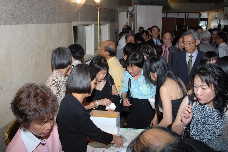 #91 1969年畢業校友韓蓮美代表大會贈送紀念獎牌給梁景輝老師。韓蓮美校友是此次聯歡晚會的發起人與主持人之一。