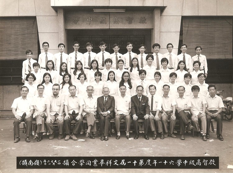 #10 1972年畢業校友與老師們合影 前排:何發 賴學慰 沈日恆 姚福照 吳定 云昌榕 陳年年 曾憲利 中排:溫國明老師 張捷興(張豪雲)老師 廖錦雲老師 梁錦輝老師 唐燕芬老師 朱榮長老師 後排:梅家駒 陳家棟 王小筠 韓麗英 趙美娟 曾谷鶯 陳惠瑛 何艷珍 蔡全卿 馮玲 吳清輝、 陳嘉齢 黃啟漢、 張慧蓀、 沈瑞安、 曾傳釗