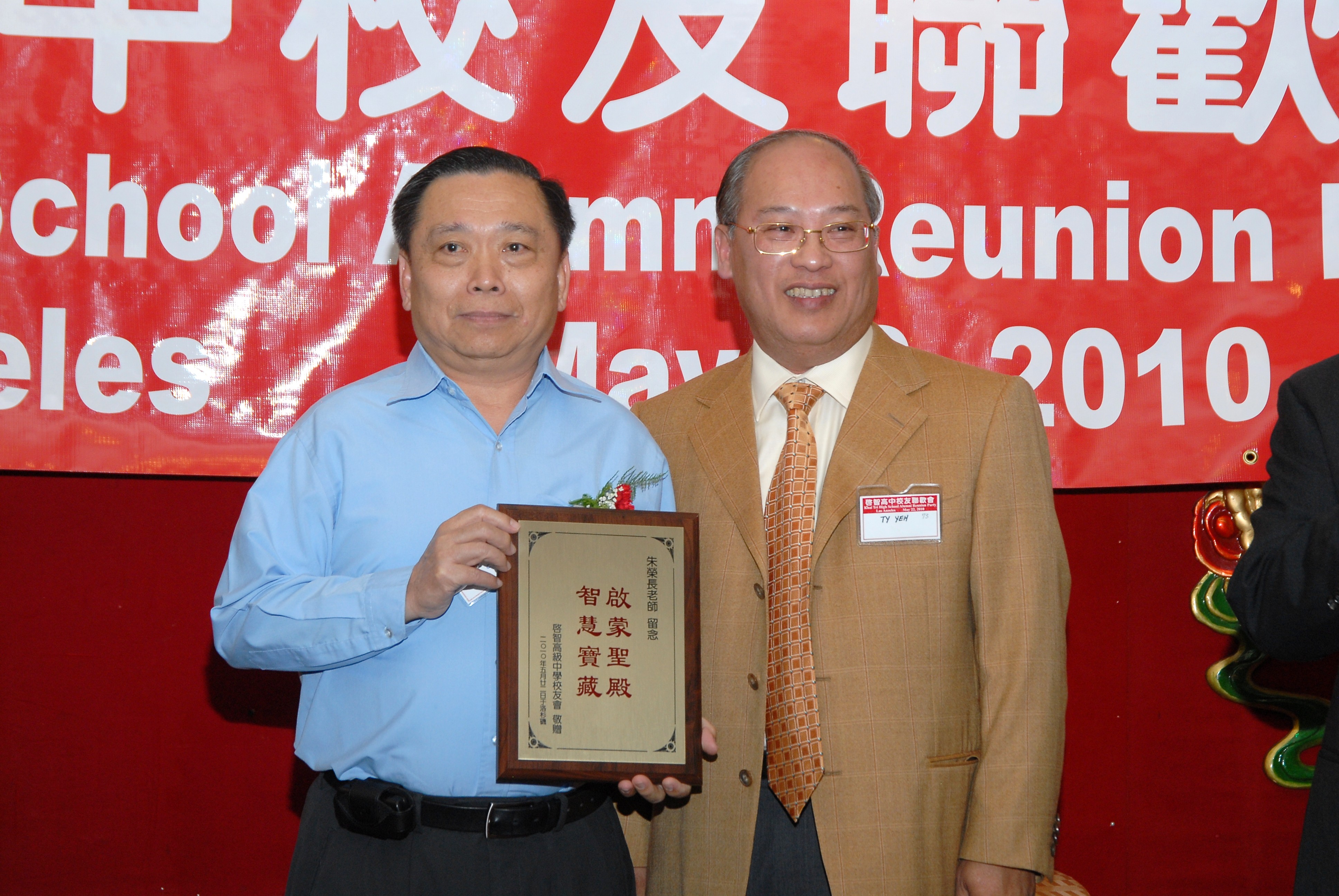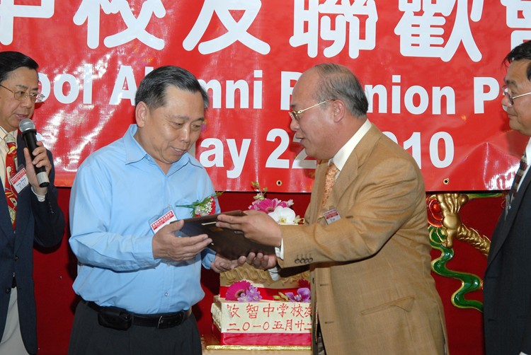 #8 1973年畢業校友葉強代表大會贈送紀念獎牌給朱榮長老師