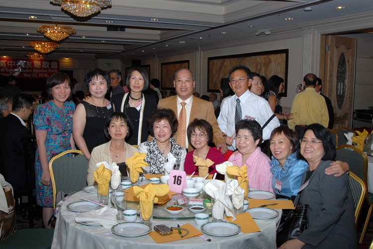 #10 73年畢業校友 前左:陳妙香、衛守潔、陳瑋、郭莉莉、73年文科校友姚彩虹 後左:李德南 馮學華太太 葉強 黃慧芝 缪潔玉.