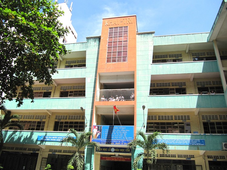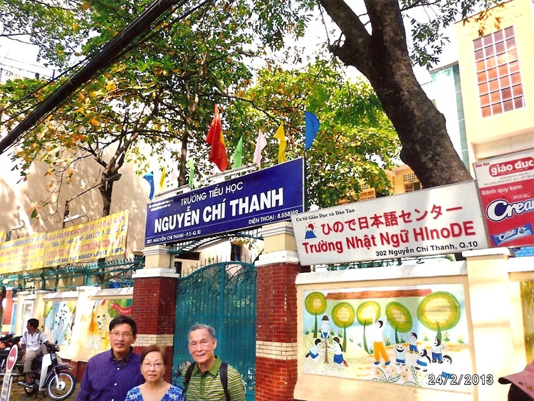 #30 啓智母校近貌:新政府接管後,已變成越文小學,啓智樓的高處,仍然保留着『KHAI-TRI』兩字,看來『啓智』高不可攀。入口處的橫匾上,寫著『Tiên Học Lể, Hậu Học Văn』(先學禮,後學文),儒家思想還在,是一個可喜的現象。