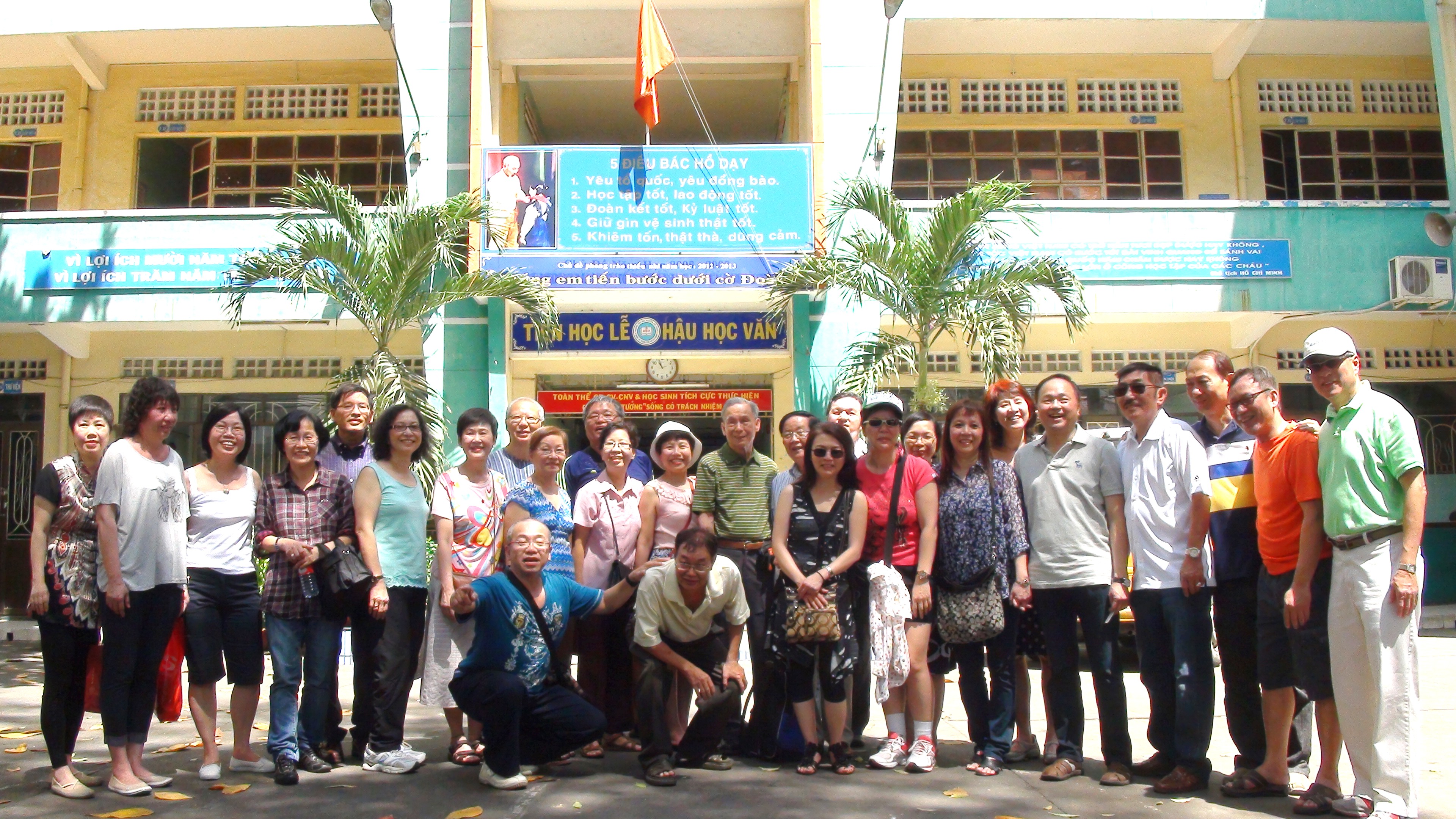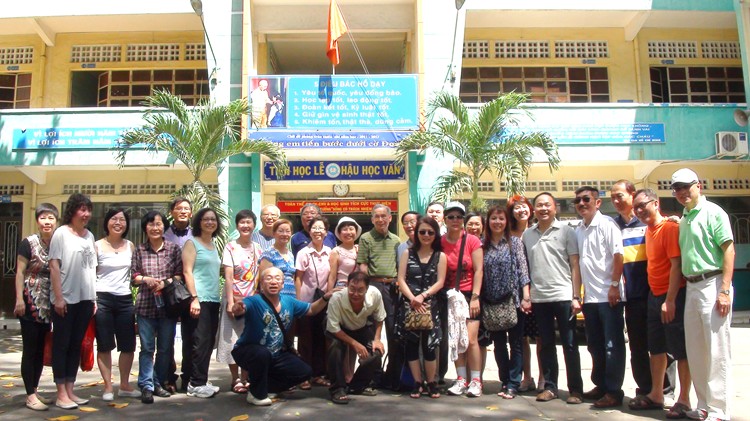 (1)返回母校胡志明市舉辦聯歡晚會和情商母校原址越南校長,允許進入學校校場攝影全體照及允許同學們登上各層樓之課室拍照留念。