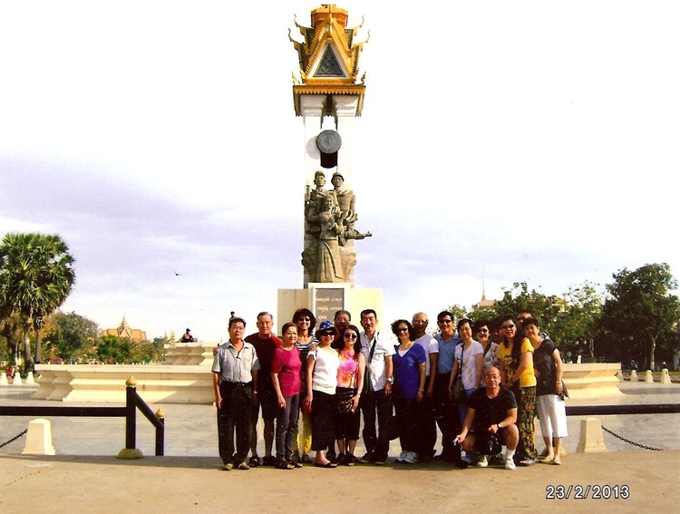 #23 懾於柬埔寨吳哥窟,Feb 21,2013:苻偉民、梁師母、容雅麗、陳嘉齡、林湄湄、陳鳳儀、鄧以鏘、Louisa(鄧以鏘太太)、李文疆。一路上的歡歌笑語,使大家忘了倦意。