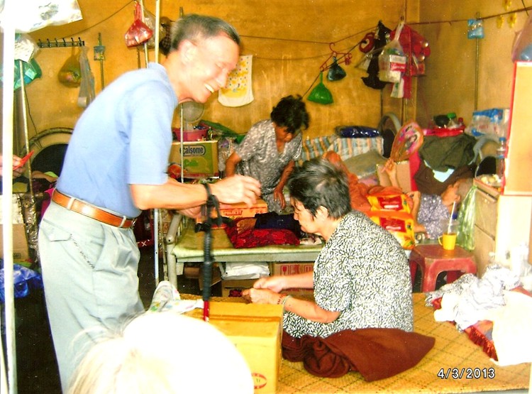3月4日,梁老師在玉山寺老人院內,贈送紅包給老人