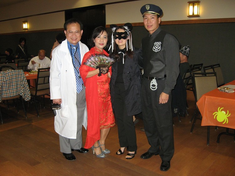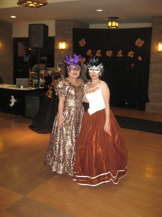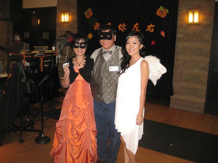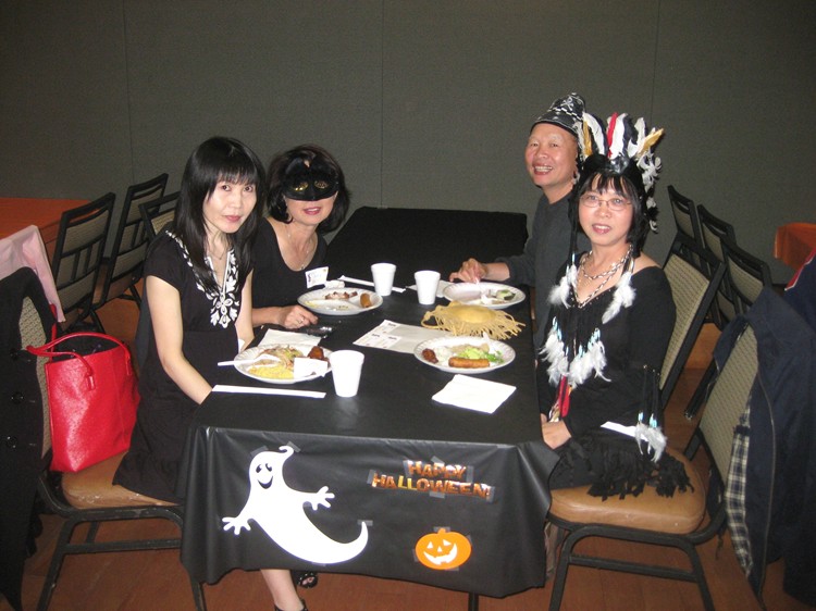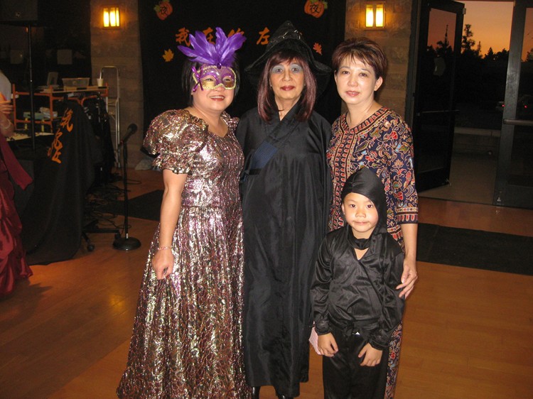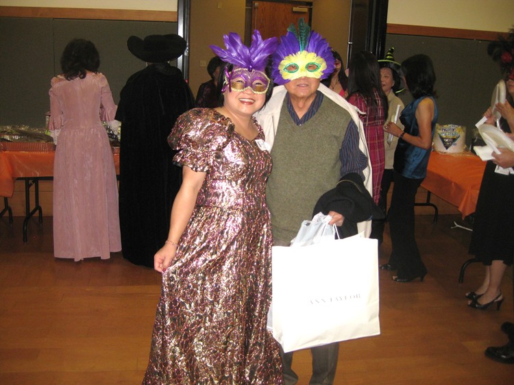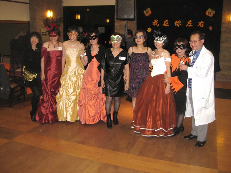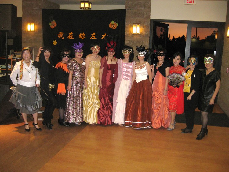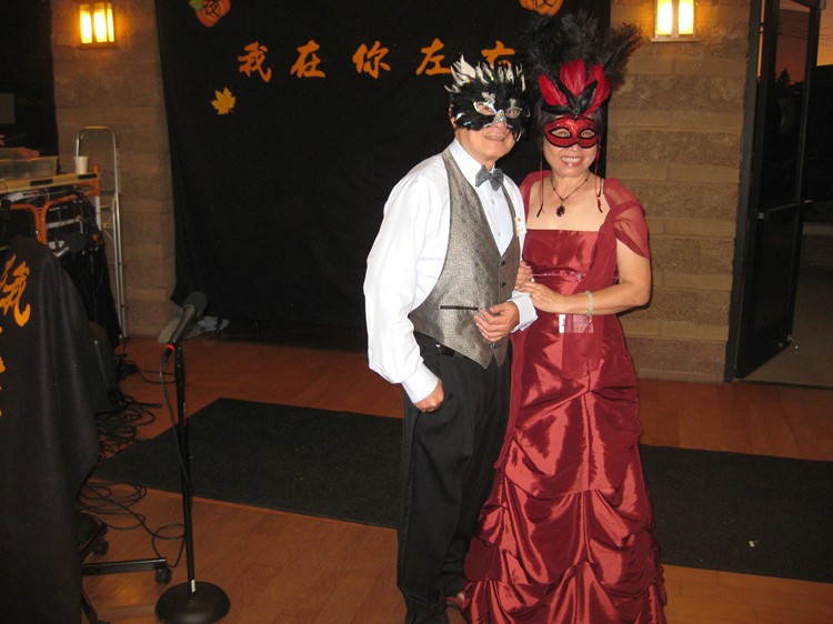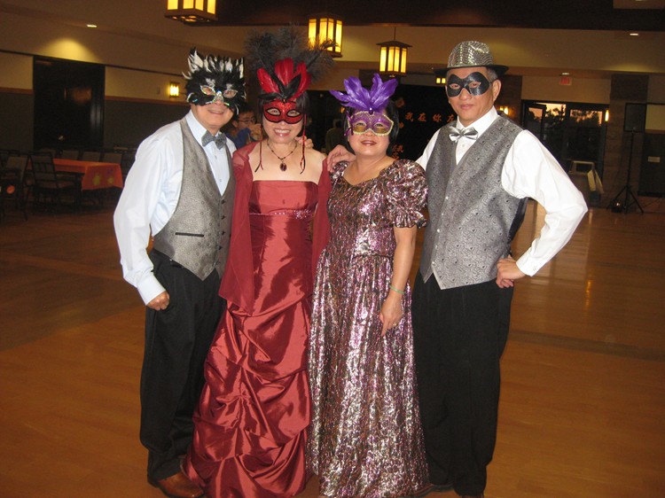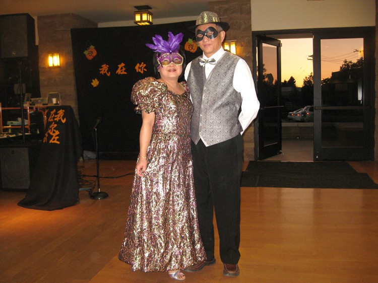 十月卅日萬聖節前夕,我們在洛杉磯郊區的柔似蜜市、舉辦了一個別開生面的化裝舞會。美國是一個年輕的民族,在這個傳統的節日裡、大人們跟著孩子們玩,扮鬼扮馬,度過這個很有意義的節日。 施英嫣姐出了一個“鬼主意”,她開的婚紗店裡有許多晚禮服與歐洲中世紀的晚裝,提議我們女士們每人選一件晚裝穿上、然後戴上面具。男士們則選一件西裝背心,戴上面具,所有都由英嫣姐贊助,我們有了這樣一位“大財主”贊助,使舞會生色不少。其他與會者,可裝扮各式各樣的“鬼怪”來慶祝這個傳統節日。 在此相簿裡,各位將看到舞會歡樂氣氛的縮影。
