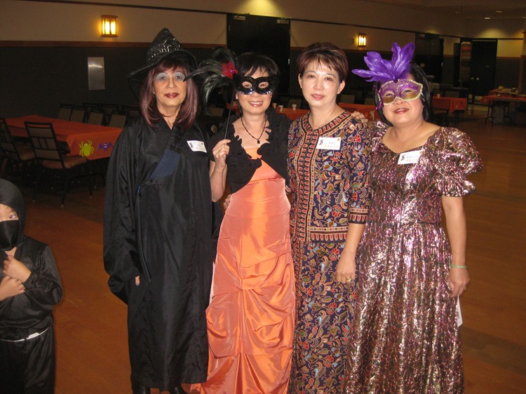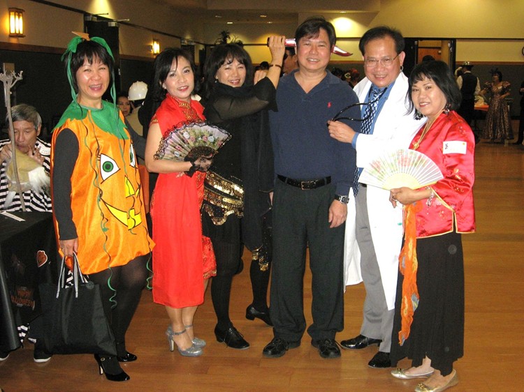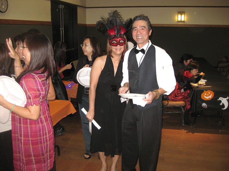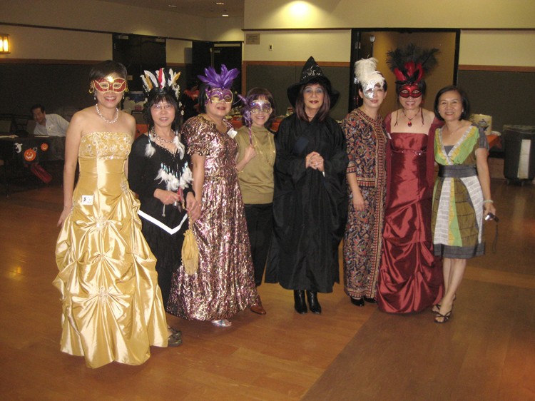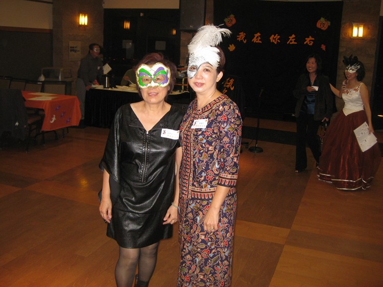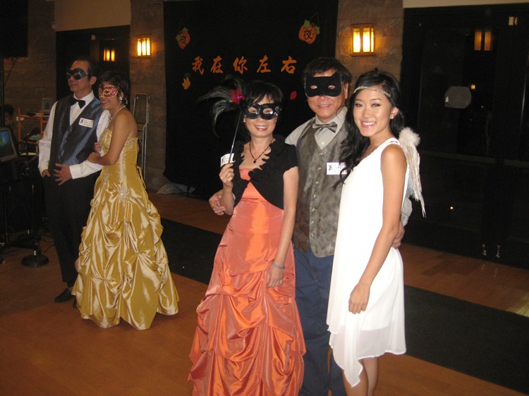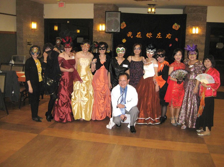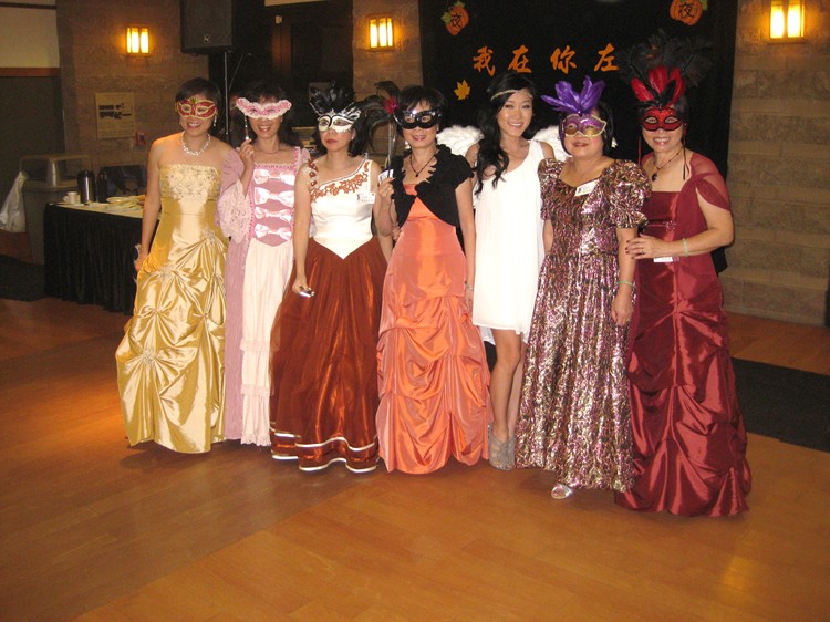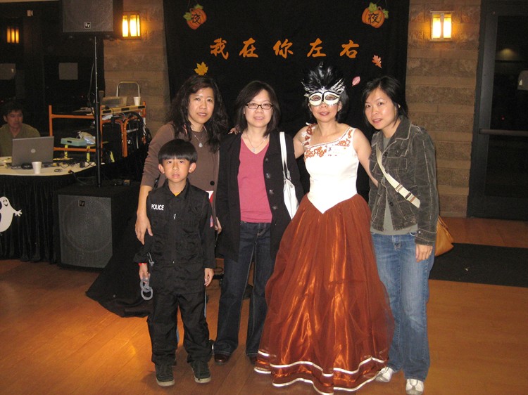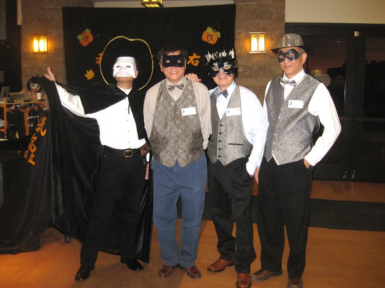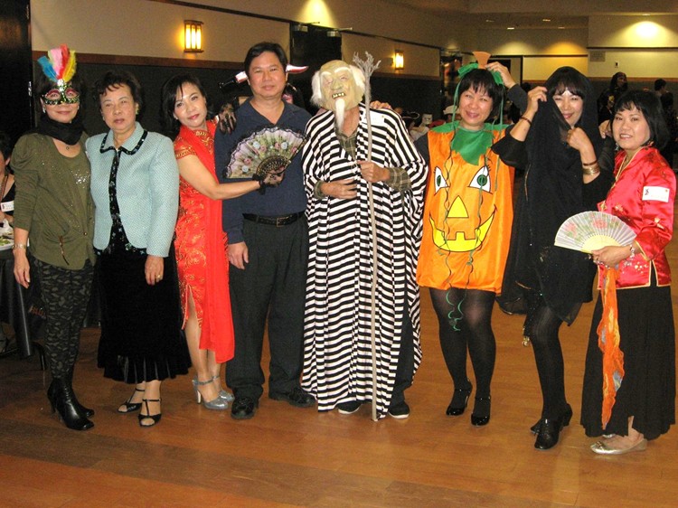 十月卅日萬聖節前夕,我們在洛杉磯郊區的柔似蜜市、舉辦了一個別開生面的化裝舞會。美國是一個年輕的民族,在這個傳統的節日裡、大人們跟著孩子們玩,扮鬼扮馬,度過這個很有意義的節日。 施英嫣姐出了一個“鬼主意”,她開的婚紗店裡有許多晚禮服與歐洲中世紀的晚裝,提議我們女士們每人選一件晚裝穿上、然後戴上面具。男士們則選一件西裝背心,戴上面具,所有都由英嫣姐贊助,我們有了這樣一位“大財主”贊助,使舞會生色不少。其他與會者,可裝扮各式各樣的“鬼怪”來慶祝這個傳統節日。 在此相簿裡,各位將看到舞會歡樂氣氛的縮影。