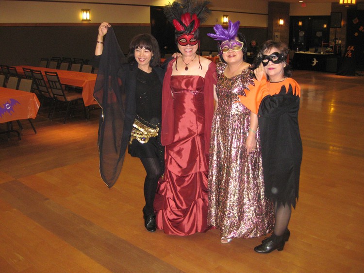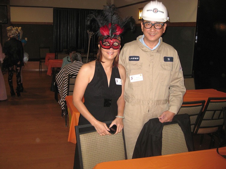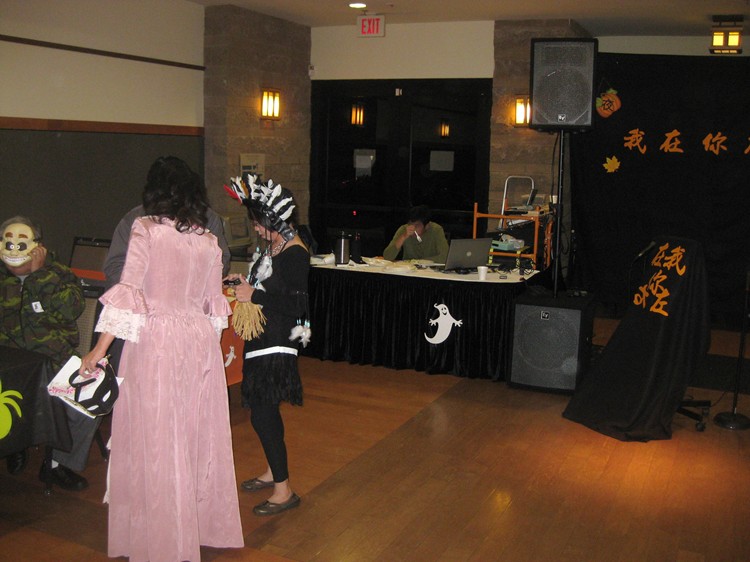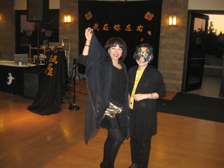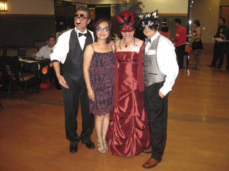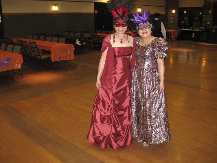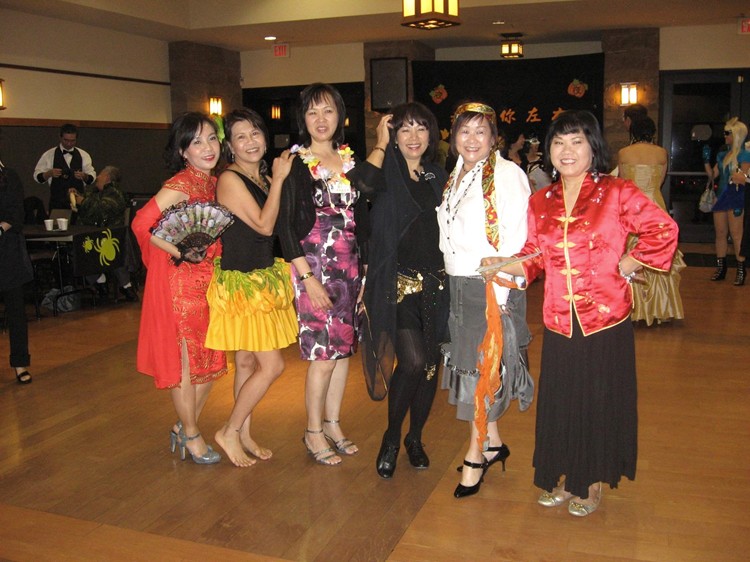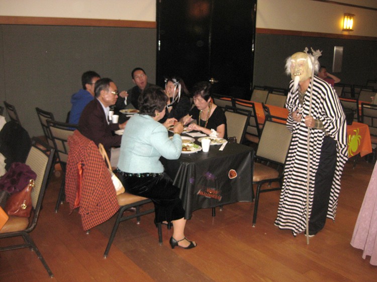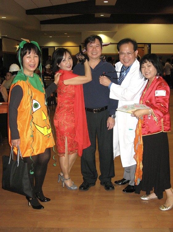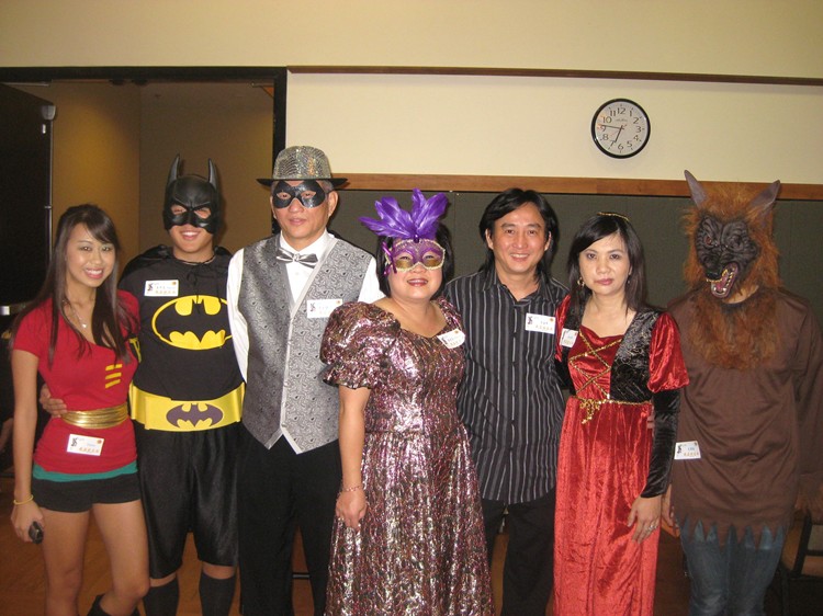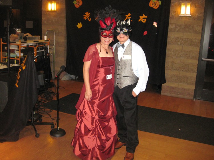 十月卅日萬聖節前夕,我們在洛杉磯郊區的柔似蜜市、舉辦了一個別開生面的化裝舞會。美國是一個年輕的民族,在這個傳統的節日裡、大人們跟著孩子們玩,扮鬼扮馬,度過這個很有意義的節日。 施英嫣姐出了一個“鬼主意”,她開的婚紗店裡有許多晚禮服與歐洲中世紀的晚裝,提議我們女士們每人選一件晚裝穿上、然後戴上面具。男士們則選一件西裝背心,戴上面具,所有都由英嫣姐贊助,我們有了這樣一位“大財主”贊助,使舞會生色不少。其他與會者,可裝扮各式各樣的“鬼怪”來慶祝這個傳統節日。 在此相簿裡,各位將看到舞會歡樂氣氛的縮影。