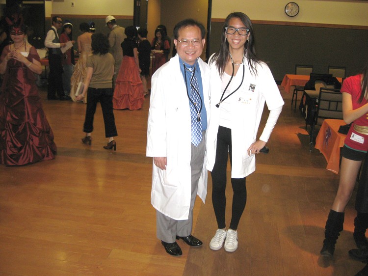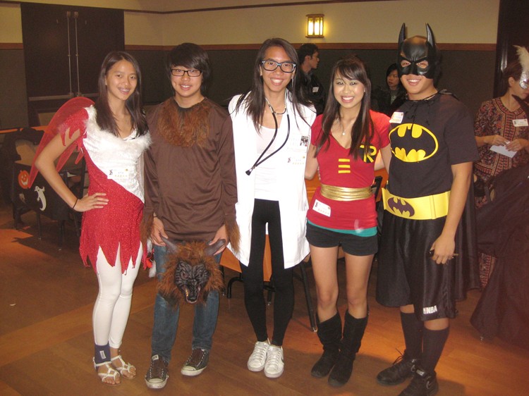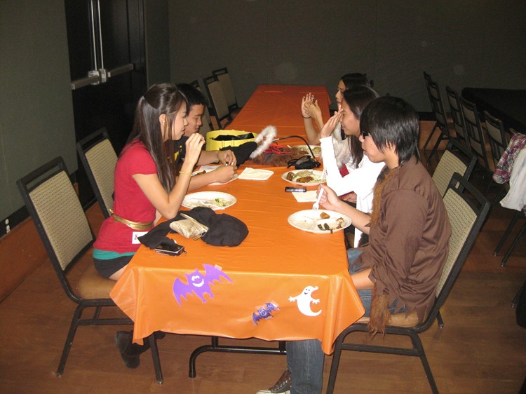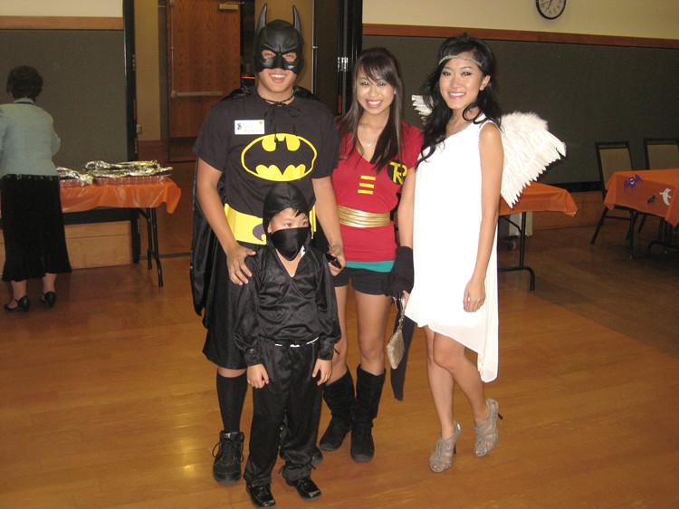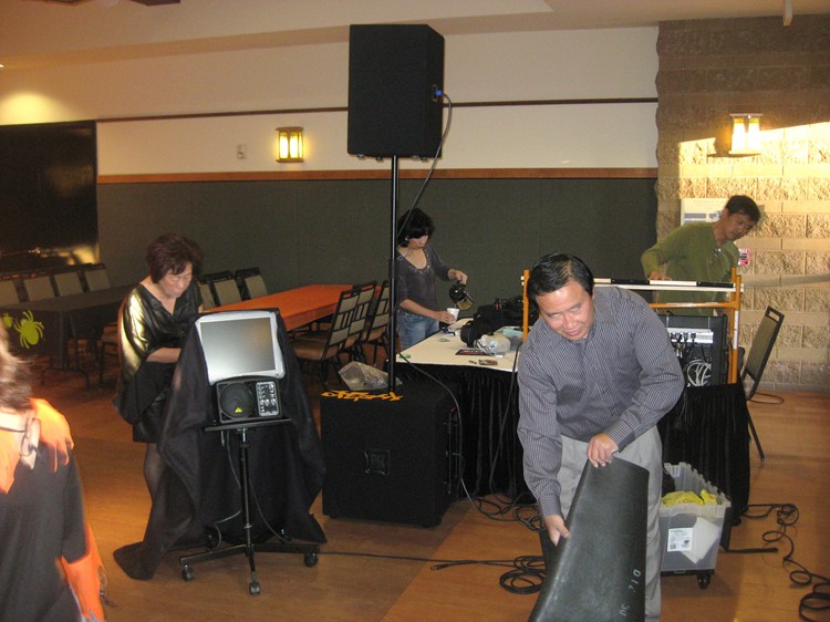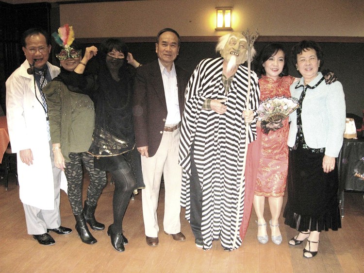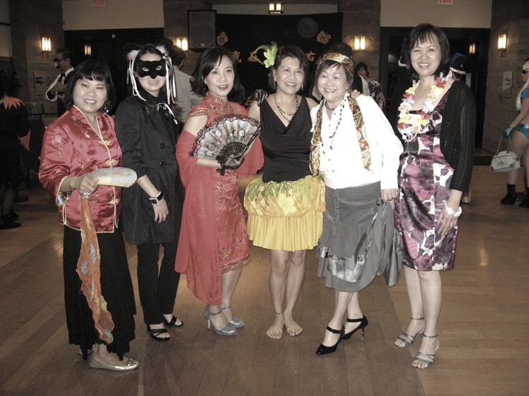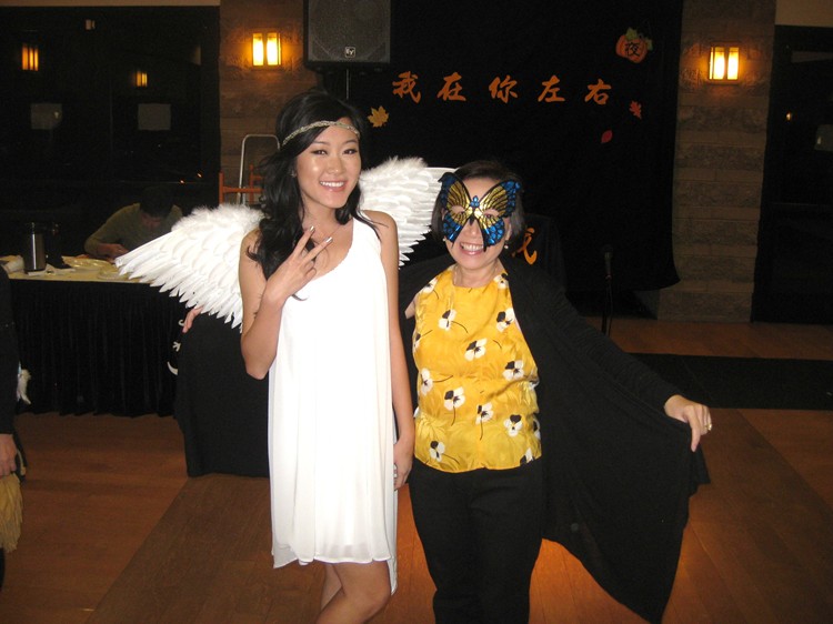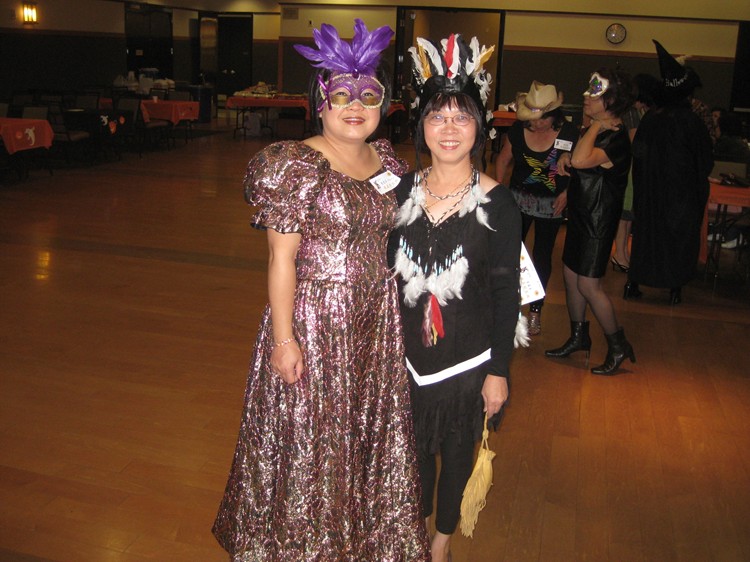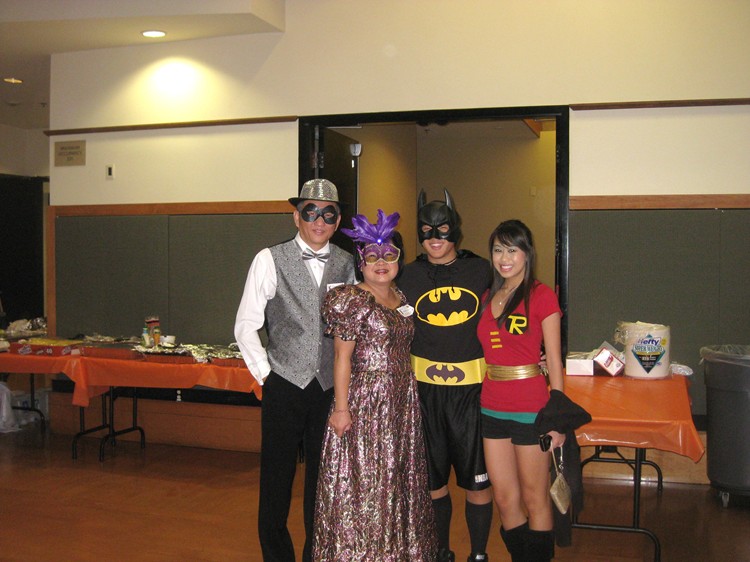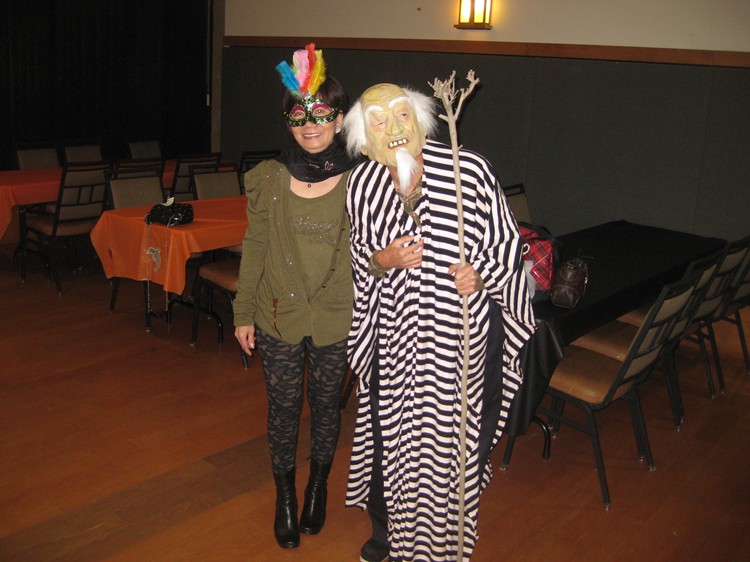 十月卅日萬聖節前夕,我們在洛杉磯郊區的柔似蜜市、舉辦了一個別開生面的化裝舞會。美國是一個年輕的民族,在這個傳統的節日裡、大人們跟著孩子們玩,扮鬼扮馬,度過這個很有意義的節日。 施英嫣姐出了一個“鬼主意”,她開的婚紗店裡有許多晚禮服與歐洲中世紀的晚裝,提議我們女士們每人選一件晚裝穿上、然後戴上面具。男士們則選一件西裝背心,戴上面具,所有都由英嫣姐贊助,我們有了這樣一位“大財主”贊助,使舞會生色不少。其他與會者,可裝扮各式各樣的“鬼怪”來慶祝這個傳統節日。 在此相簿裡,各位將看到舞會歡樂氣氛的縮影。
