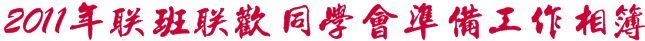 此相簿裡的照片、是聯班同學會籌備組於會前的工作籌備與會議現場。聯班同學會于2011年2月11日舉行,由斌社、文社、英社、與鵬恆社共同主辦,在同學聯歡會前一個禮拜又有強社班的老大姐老大哥們參加我們的聚會、他們也參與節目演出,使聚會生色不少。