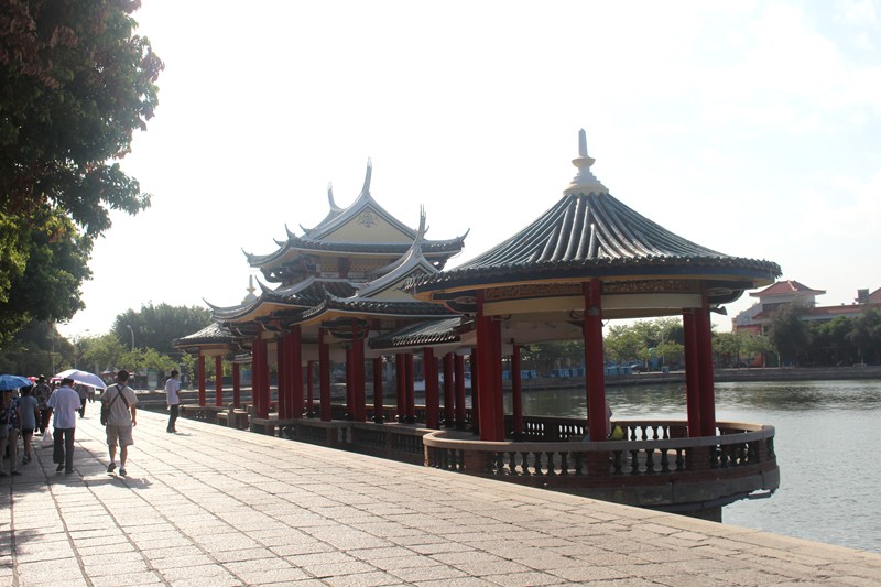 我們又來到另一個景點,古色古香的臨湖亭子,美不勝收。