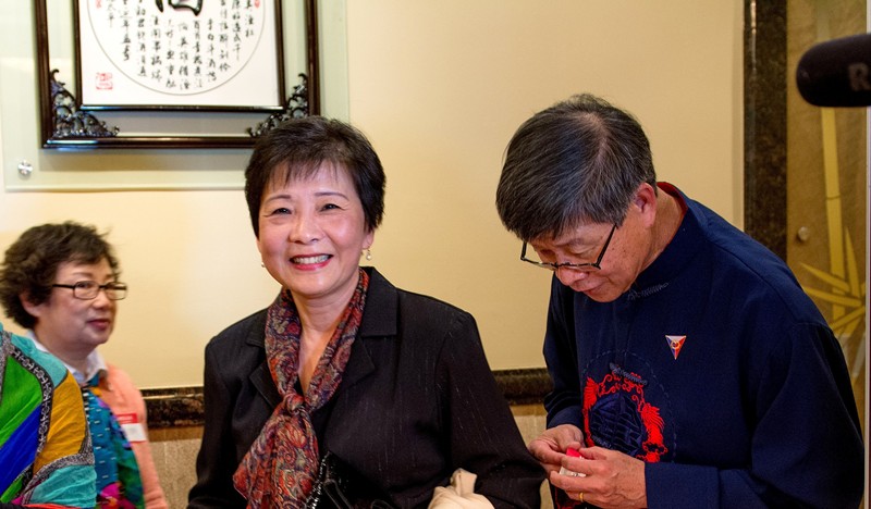 進入會場時,樹人網站的特派員潘小嬌正在訪問程英英老師,王永康錄影,老亮祿攝影。