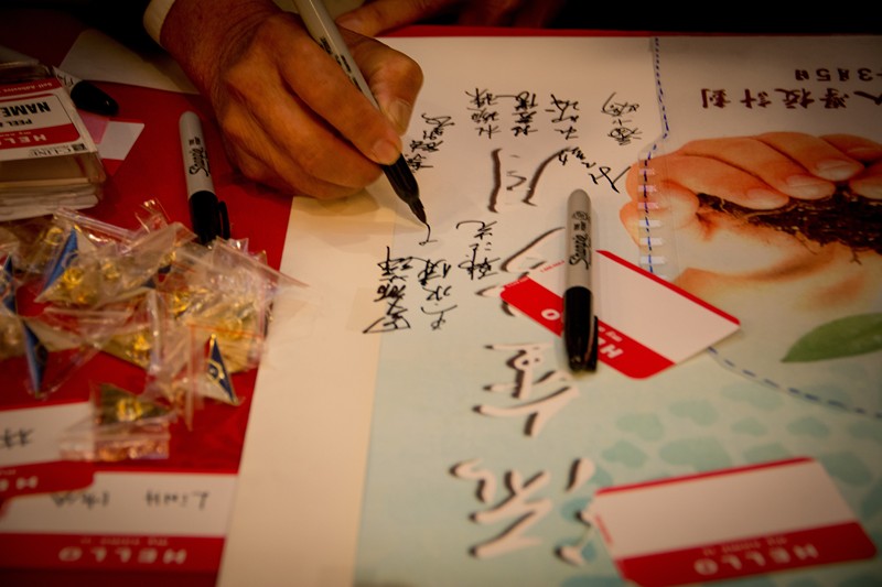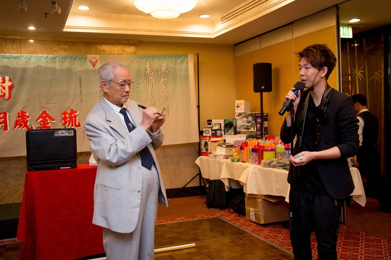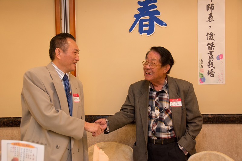 普增鵬老師姍姍來遲,簽名留念。高帝存董事長(右)