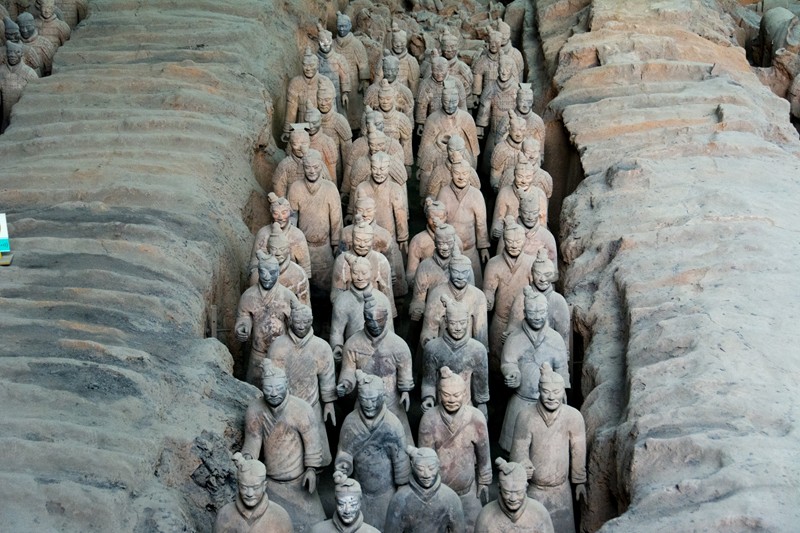 剛挖出來的兵馬俑是色彩鮮豔的,過段時間後色彩都會消失掉,目前還沒技術能保留兵馬俑上的色彩,因此,考古學家們已經停止挖掘,等技術更成熟時再挖。