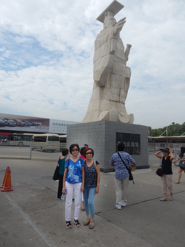 後面的石像,威猛無比,2500年前站在他前面的男男女女,不是被送去築長城就是去造皇陵,那裡像現在那樣的悠閒站著拍照呢!