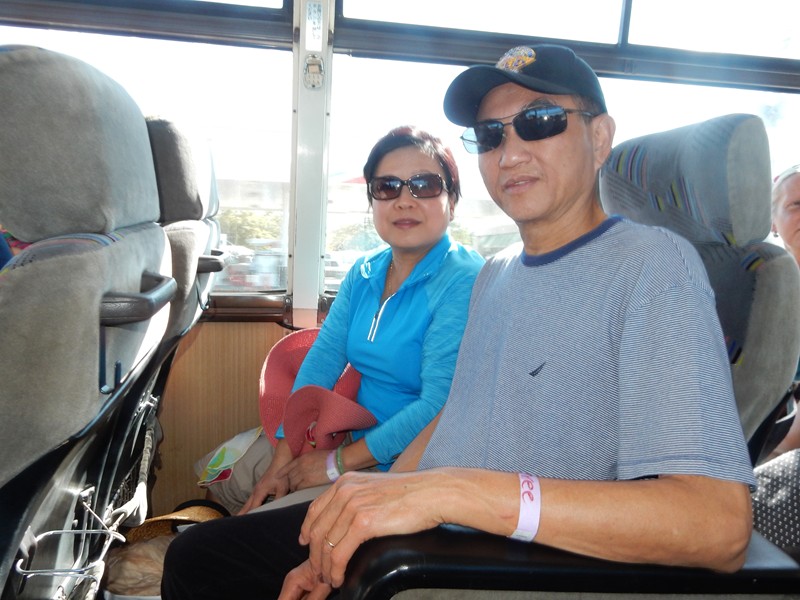 張淑美、劉慶和,在往景點的巴士上。