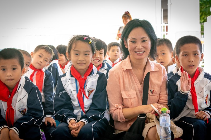 孩子們的校服上,都繡上舊時的樹人學校徽章,場面非常溫馨。