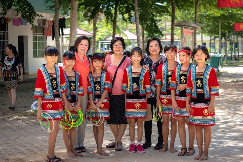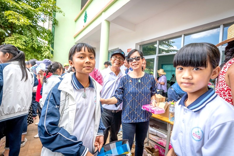 葉茵萍、李瑞華,抵達文祥樹人小學時合影。