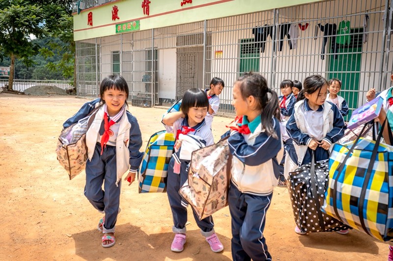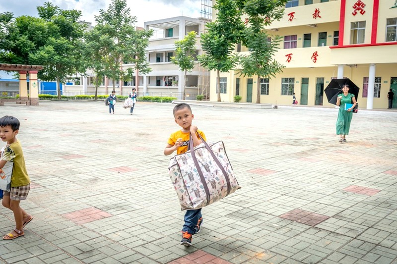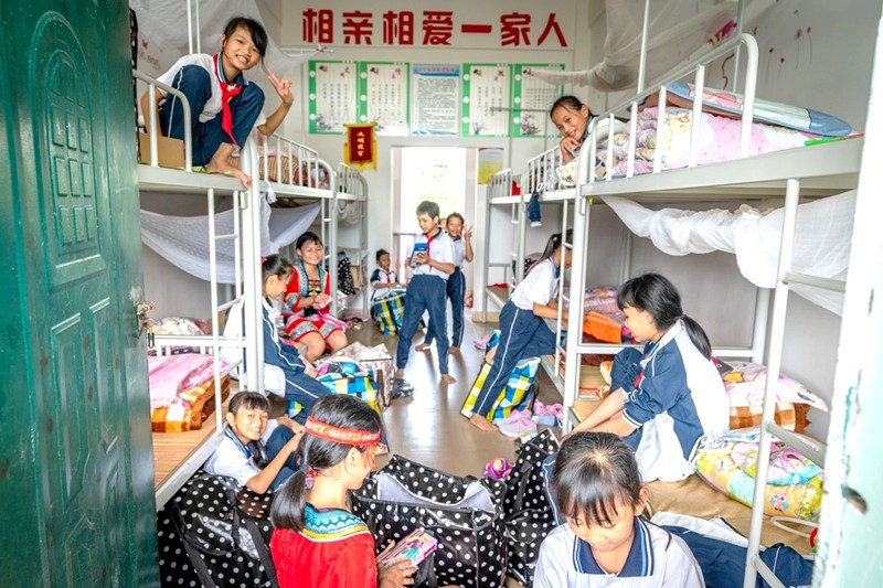 孩子們寄宿在學校宿舍,週末才回家,有的步行一兩個鐘頭才到家呢。