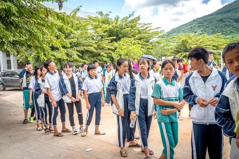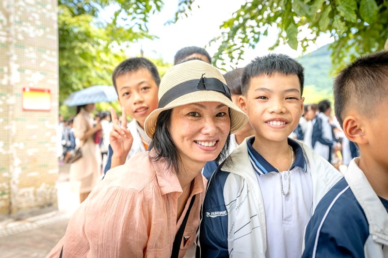 學生們穿著我們贈送的校服與鞋子,迎接『樹人建樹人愛心計劃』成員的到來。