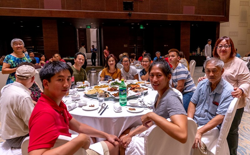 葉茵萍、李芳蘭、與吳元椿伉儷及孩子們在海口酒店會合用晚餐