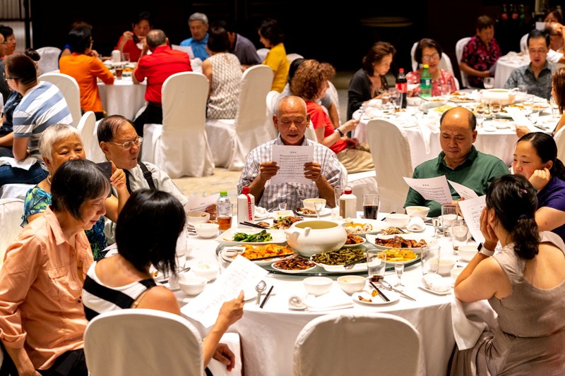 Ed、劉美德、周肇慧、杜銳光、李廣耀、李瑞華、葉茵萍、李芳蘭、羅碧玉,這一桌是吃素的。
