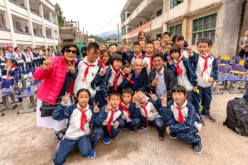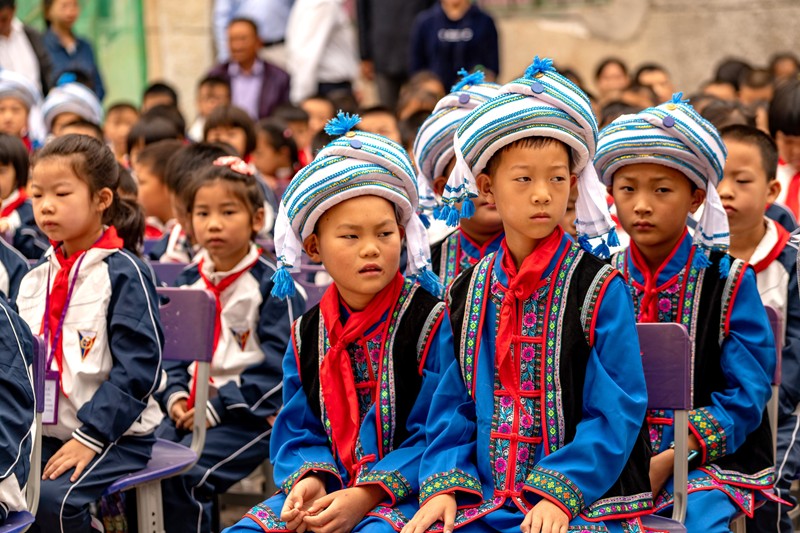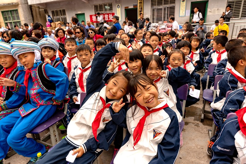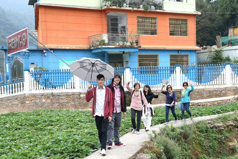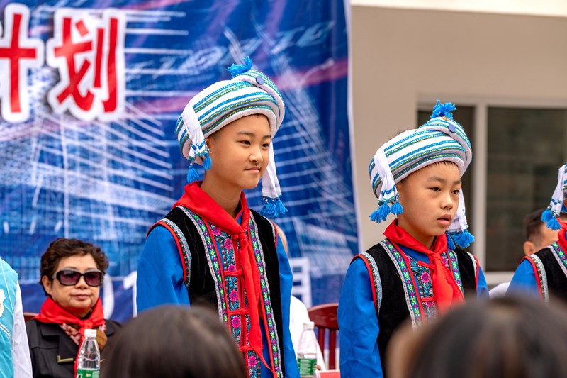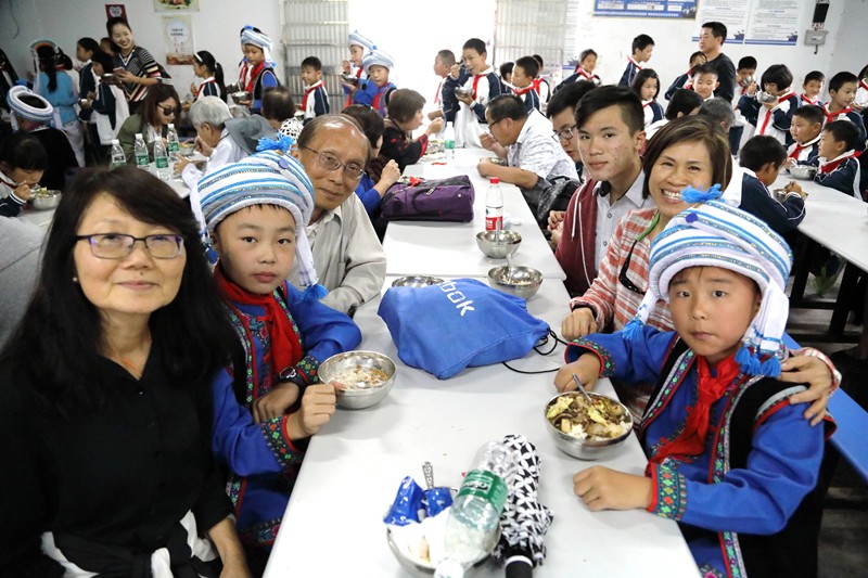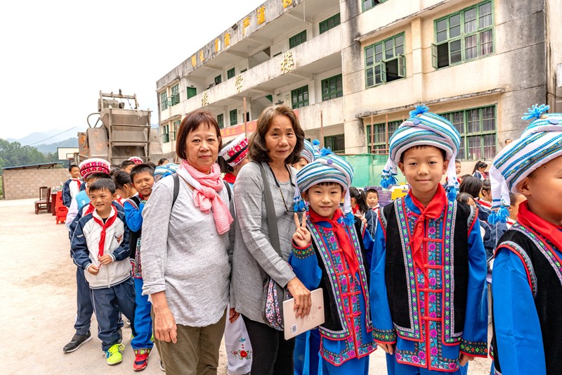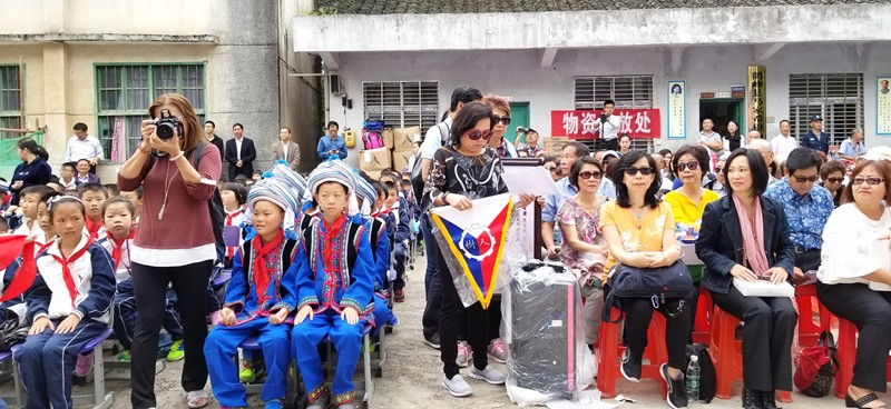 白族鄉樹人小學就在這裡,由於入山道路狹小,大巴士無法上山,地方領導派了八輛小廂車把我們送到學校,盛情難卻.....