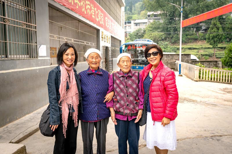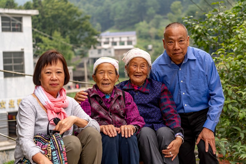施英嫣、施英媚與鄉親們合影