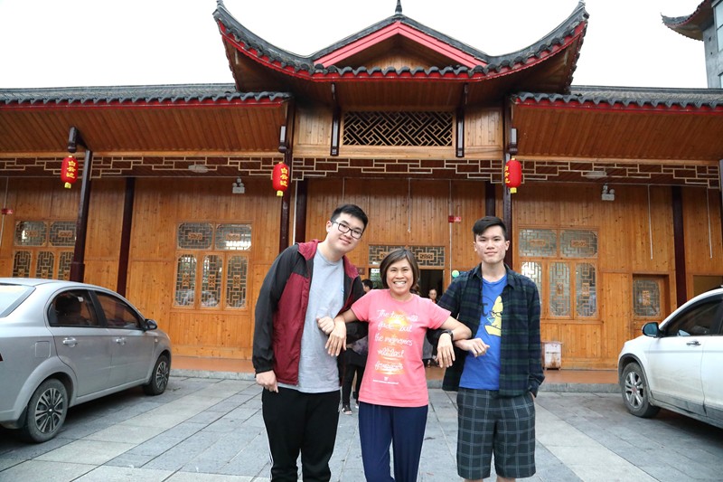 劉陶歡、張淑美、劉陶樂,夾在兩個高大兒子之間,老媽子有點哭笑不得。