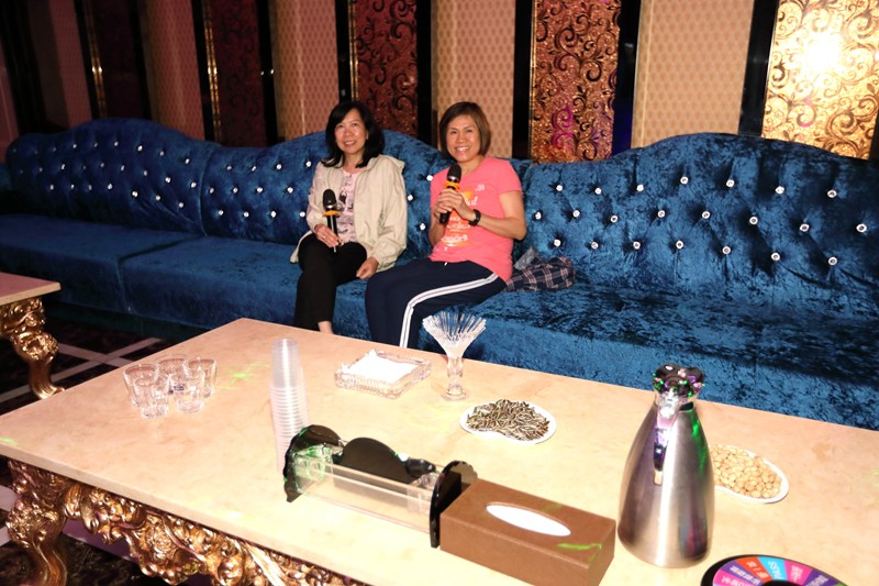 這裡也有卡拉OK廳讓你盡情的唱,她們正在唱『思鄉曲』,旅遊太累了,想回家的意思。