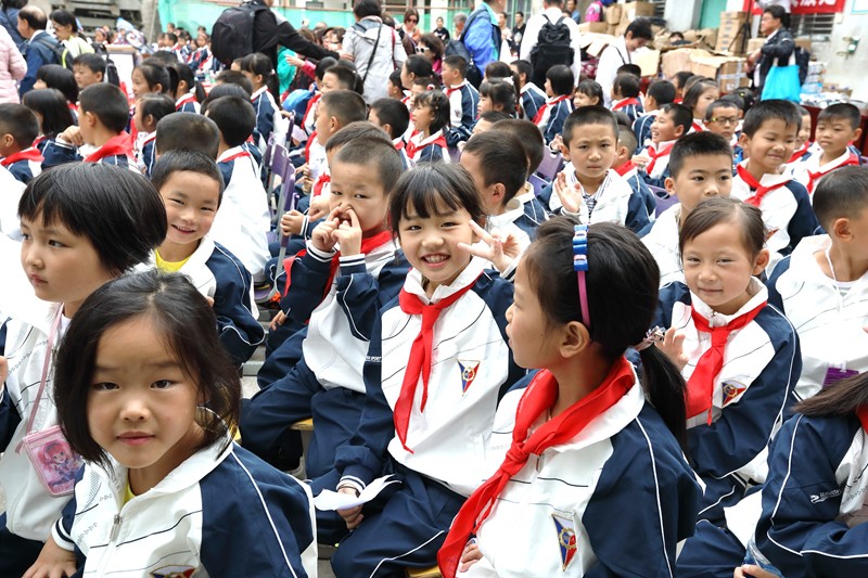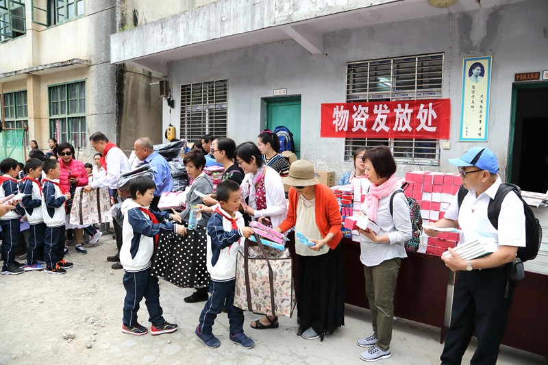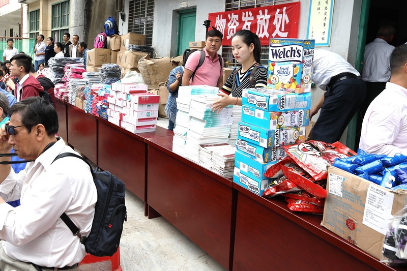 派給學生們的糖果是羅麗芳特地從美國帶來的禮品
