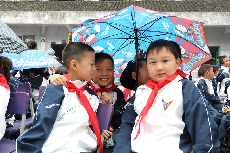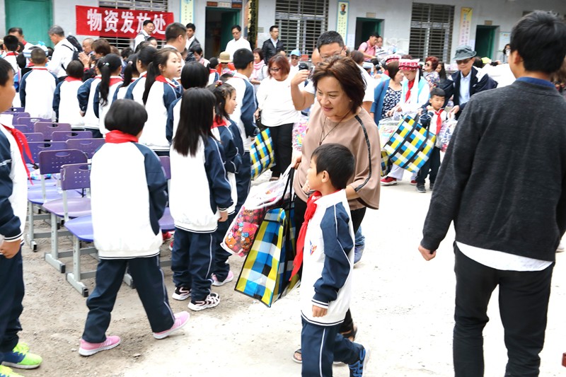 禮品太多太重,小學生們感覺有點沉啊!