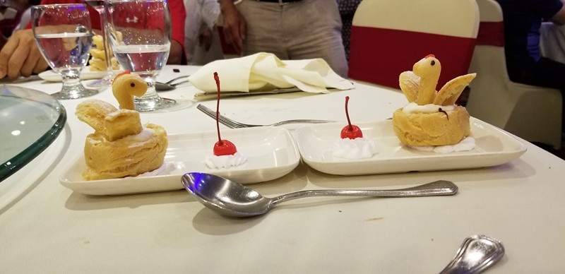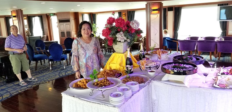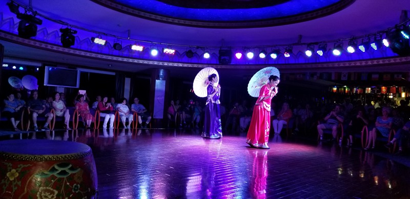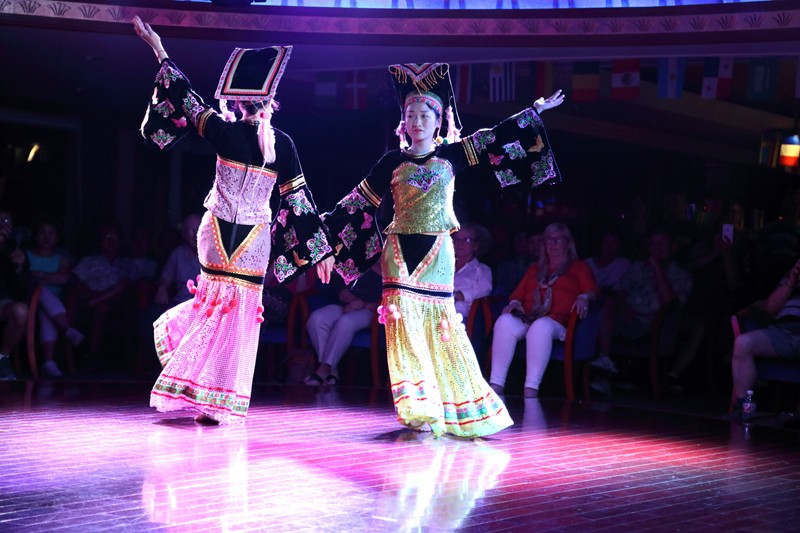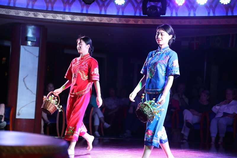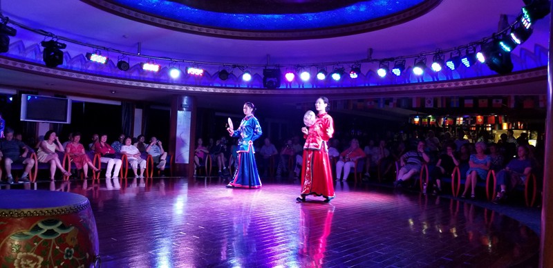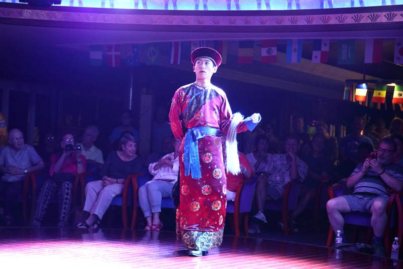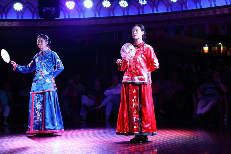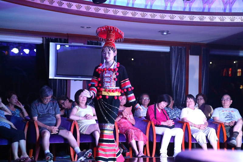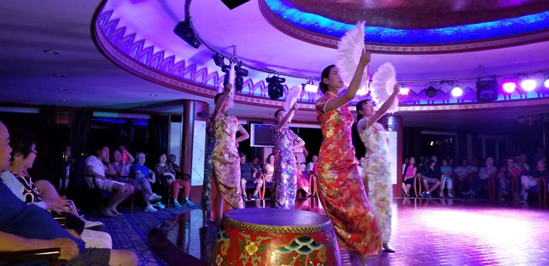 晚餐後,船上職員為我們表演時裝秀,這是別開生面的服裝表演,從我國古代漢朝服飾到現代時裝,應有盡有。