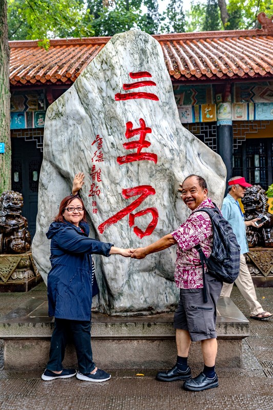 在未進入此地前(還未見此鐵塊前),導遊問誰願意與現在的配偶來世再接良緣?我們幾十個人居然沒人舉手。他說,若能把前面的鐵塊搬動,就能如願以償!看來搬不搬得動,也沒人願意與現任另一半再接連理了。吳元椿大哥正在斟酌是否搬得動?吳大嫂是否也在緊張呢?