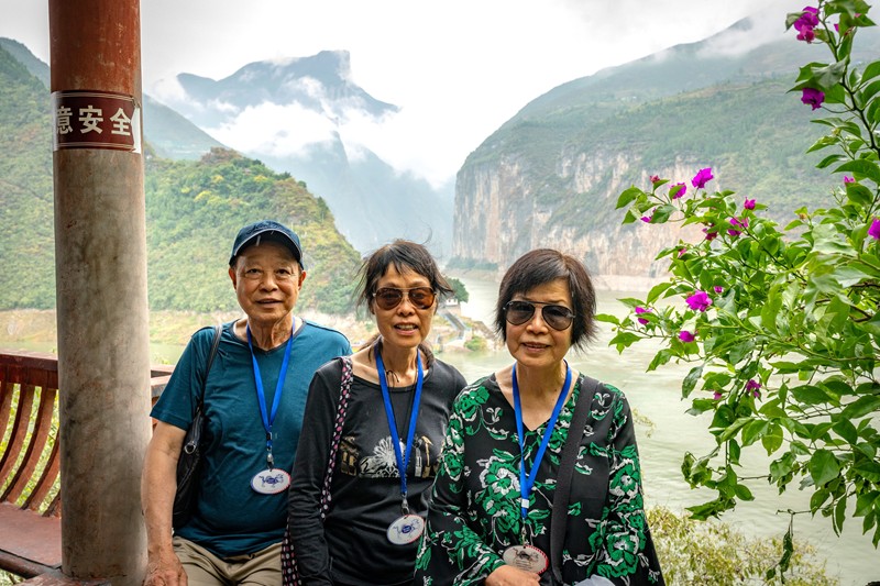 張淑美、吳彩雲、許淑貞,在三峽大壩模型展示廳前。