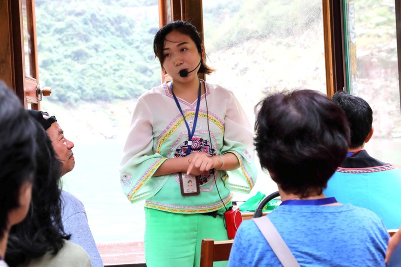 講解員在船上為我們講解江上風光