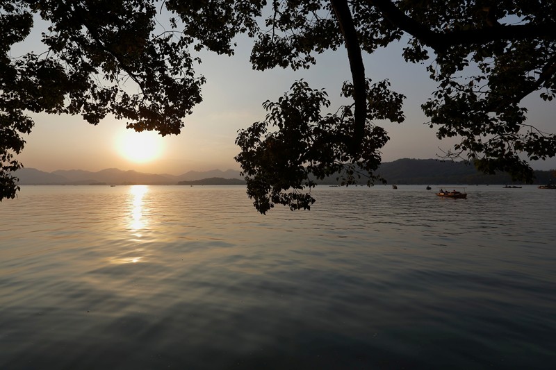 西湖夕陽景色