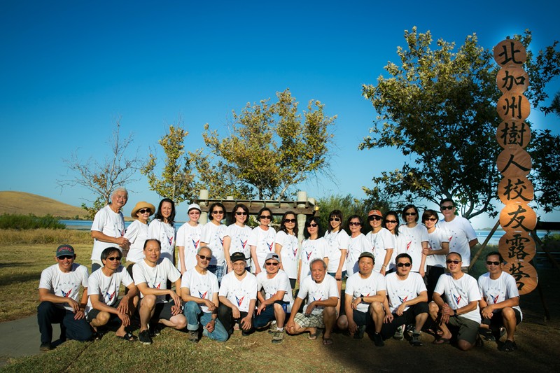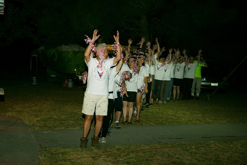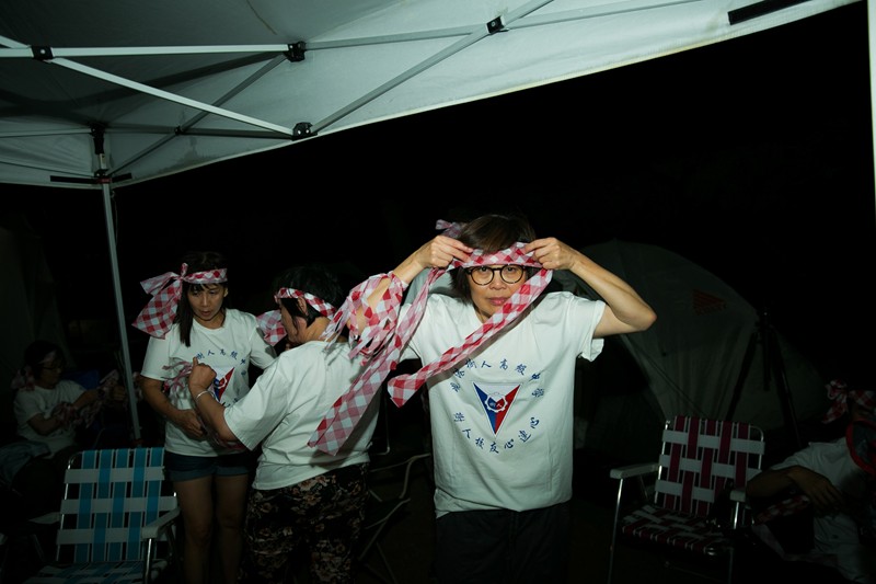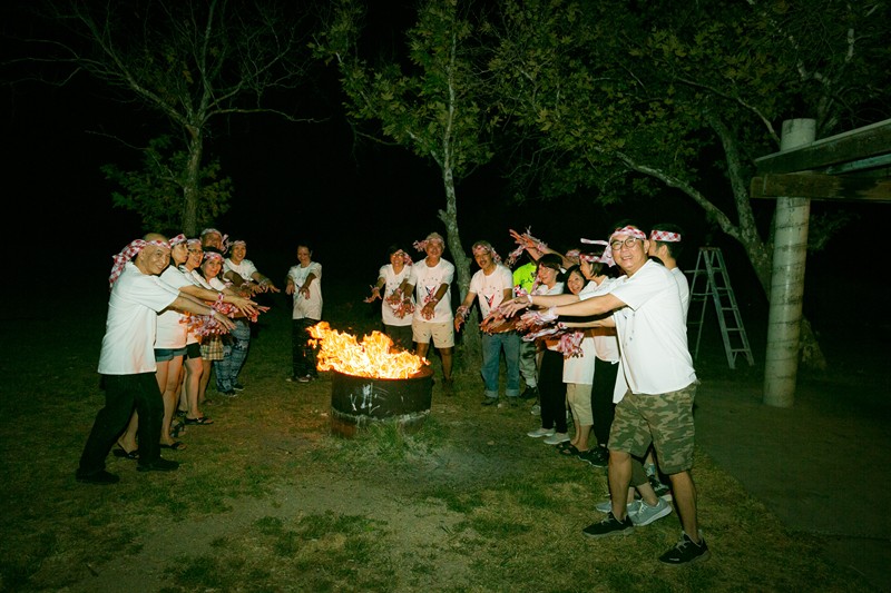 霎時間劃過寂靜夜空響徹雲霄. 但見營地亮起一陣熊熊烈火, 萬般激情向空猛烈燃燒. 我們這约有三十多人的隊伍, 身穿白色 "樹人"心連心T