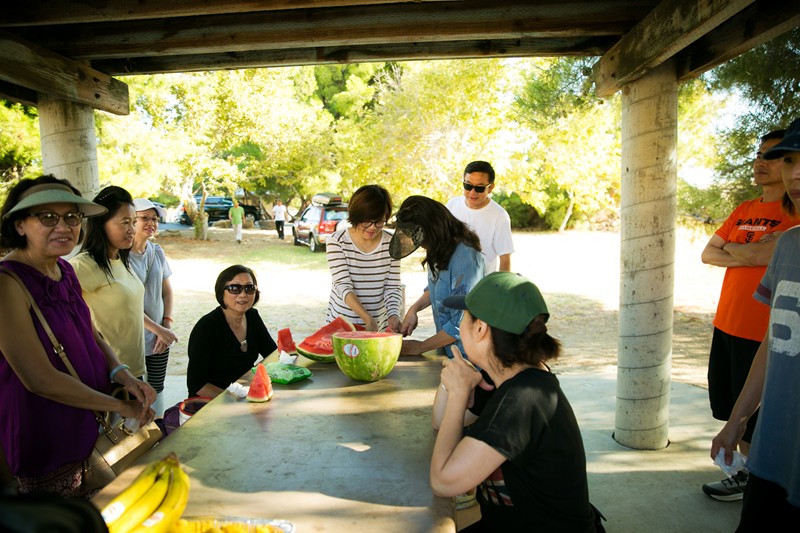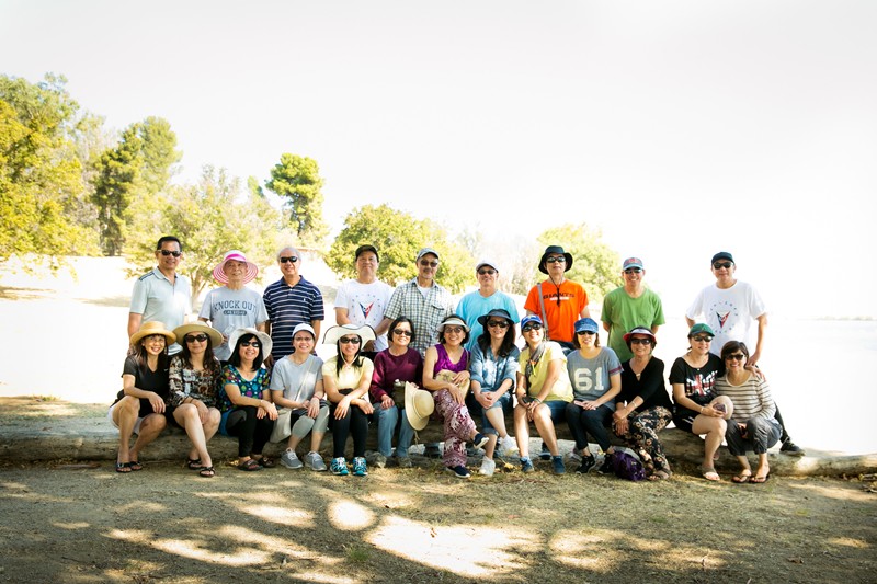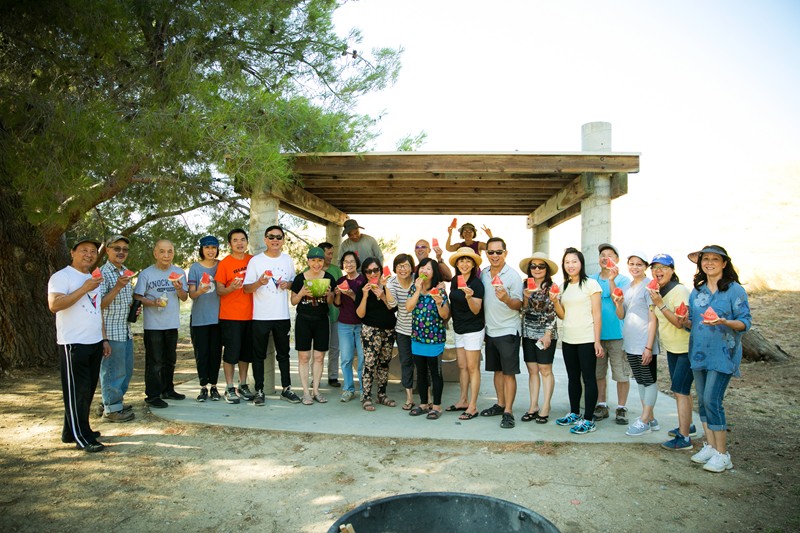 分散在各處草地上玩樂活動的團友們,紛紛聞香而至.你一句,我一句的爭相讚美這亮在眼前,誘人食慾的 "海南雞飯".