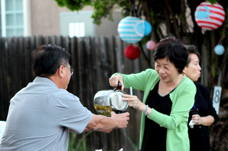 碧姬為舉辦歡迎從德州來的李榮相夫婦,並慶祝班上七月份的生日會而忙得開心!