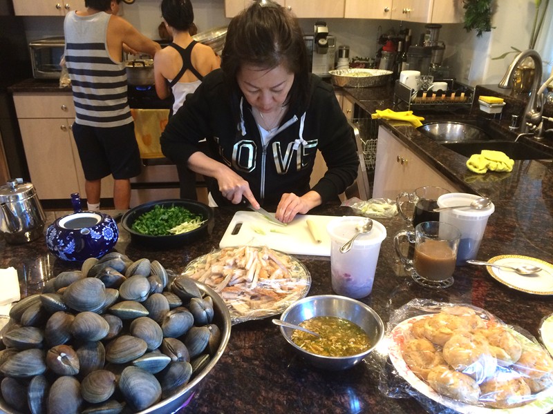 家强夫婦是退而不休的大厨師, 再加上本地豐富而新鮮的健康土產, 包括海鮮, 水果和蔬菜, 大顯一流厨藝接待遠朋。