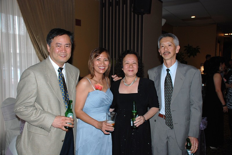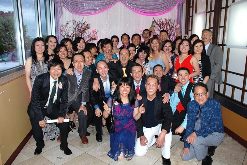 潘正英老師和張老師夫婦應邀參加婚宴。潘老師帶上樹人校徽胸章, 他的心永遠是樹人心!