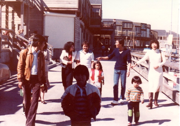 黃文錦弟弟、黃文錦、施柏禧、施英敏、蔣志昌、陳年益攝於三藩市